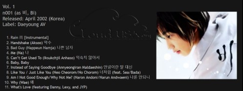 hahaha 😉 I’m not sure what the “n” is for… although I suspect “001” is the number of the album because even though all of his full studio albums (except this one) have official titles to them, Rain also gave them official volume numbers (2, 3, 4, 5, and 6).