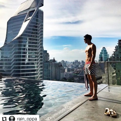 12/16/2019. Okay, so… he had us all choking and nose-bleeding and abruptly dying when he uploaded this to his Instagram captioned #wintersummer out of the blue. All I could do was post it. I couldn’t even think straight for a whole day. Soooooo awesome. (Now, between you, me, and the lamp post… I did read later where a Cloud said she thought the pic was from a time around 2 years ago. I don’t know if that’s true or not. What I do know is, I couldn’t care less. Two years isn’t that long ago, he looks the same, and I went back in his social media and the pic has not been posted before. Which means he’s been saving it for us and a rainy day, if that’s the case. *squeeeee!*) THANK YOU, RAIN. 😍 ^@@^ *because the thirst is still real*