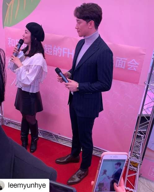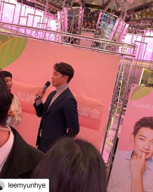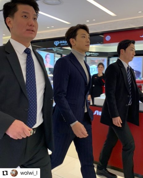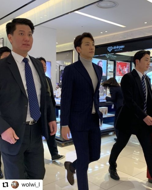 12/20/2019. Handsome Rain was spotted at the Shinsegae Duty Free mall (wow, just look at the place!) in the MyeongDong shopping district in Seoul today. The Shinsegae Group also has a new duty free mall in Gangnam District, and online shopping sites in Korean, English, and in Chinese, which might be why the lady with the mic was speaking in what sounded like a form of Chinese and the banners were Chinese as well. Gosh, he looks good! 👀☔ ^@@^ (Images credited as tagged. THX to everyone who shared! 😘)