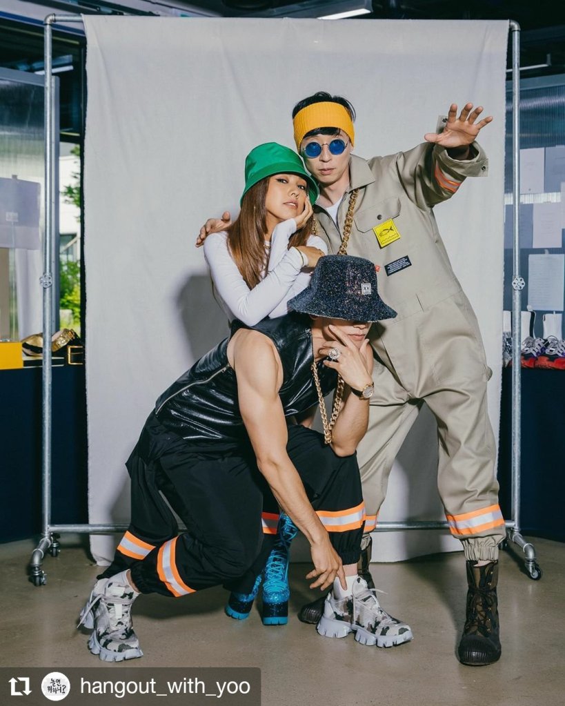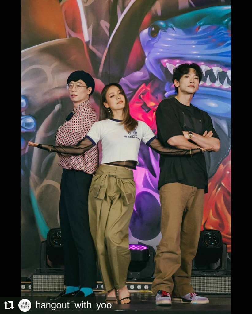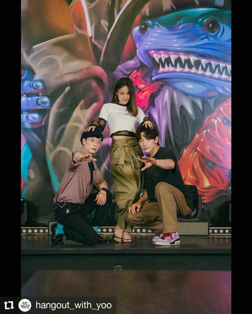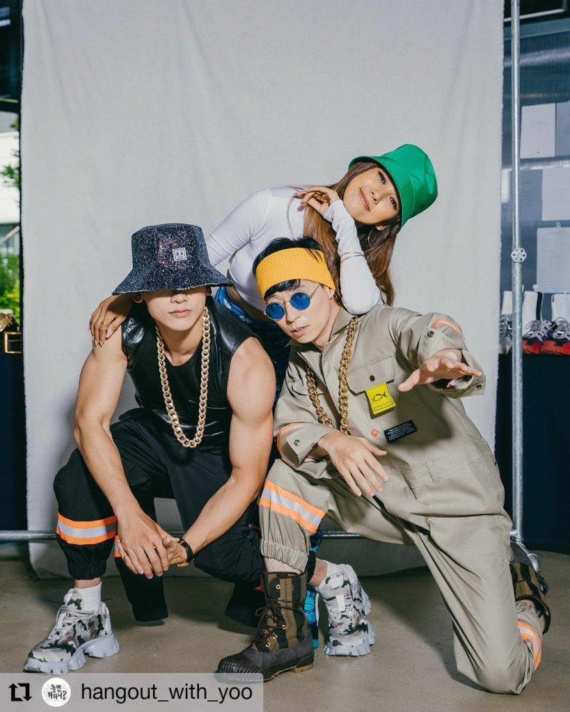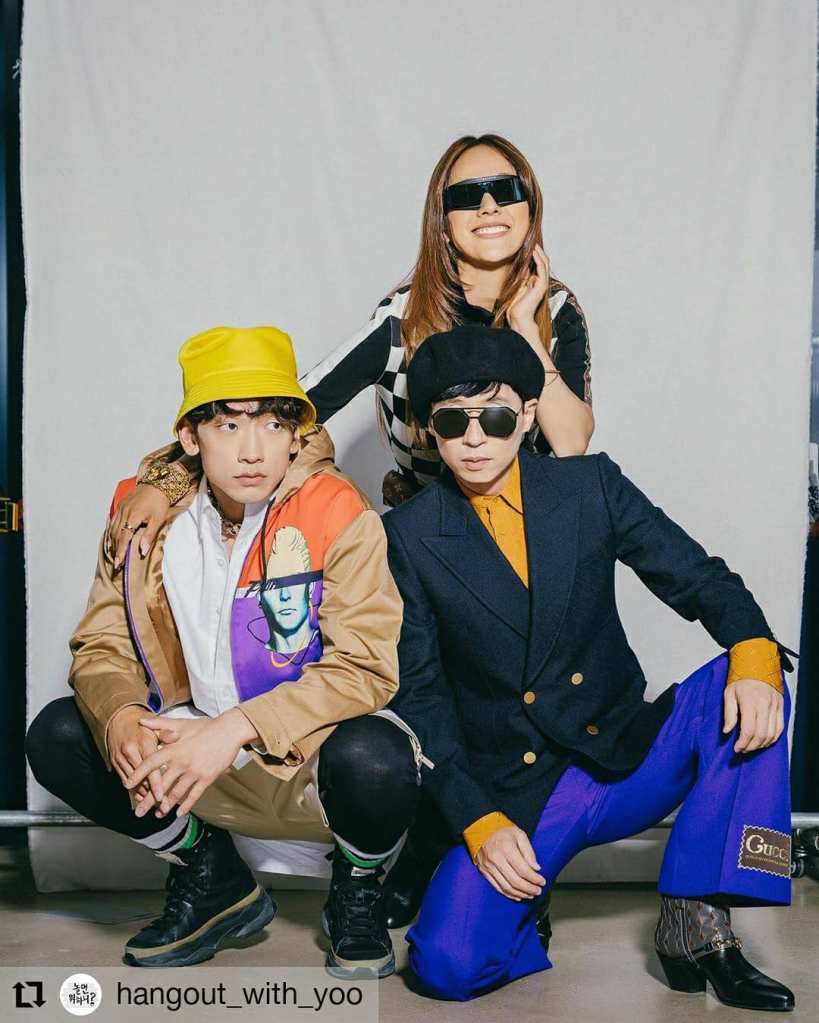 Rain (B-DRAGON) is the maknae (the youngest), HyoRi (Linda G) is the sister in the middle, and JaeSuk (U-Doragon) is the big brother to them both. JaeSuk’s TV show, Hangout With Yoo (a.k.a. 놀면 뭐하니?|How Do You Play? airing on MBC in Korea) is where the magic has happened for the past two months. Huge thanks to Kocowa TV for carrying the show’s clips with English subtitles. S-w-e-e-t!