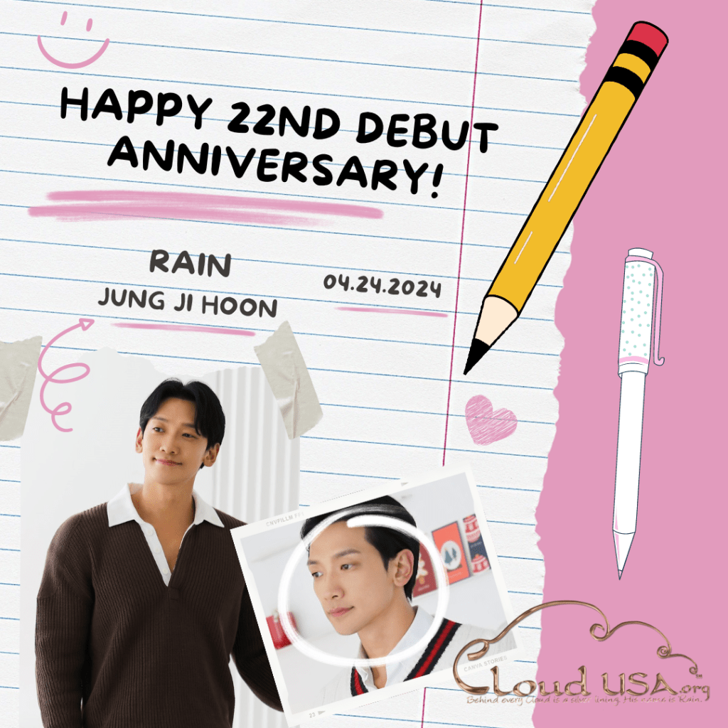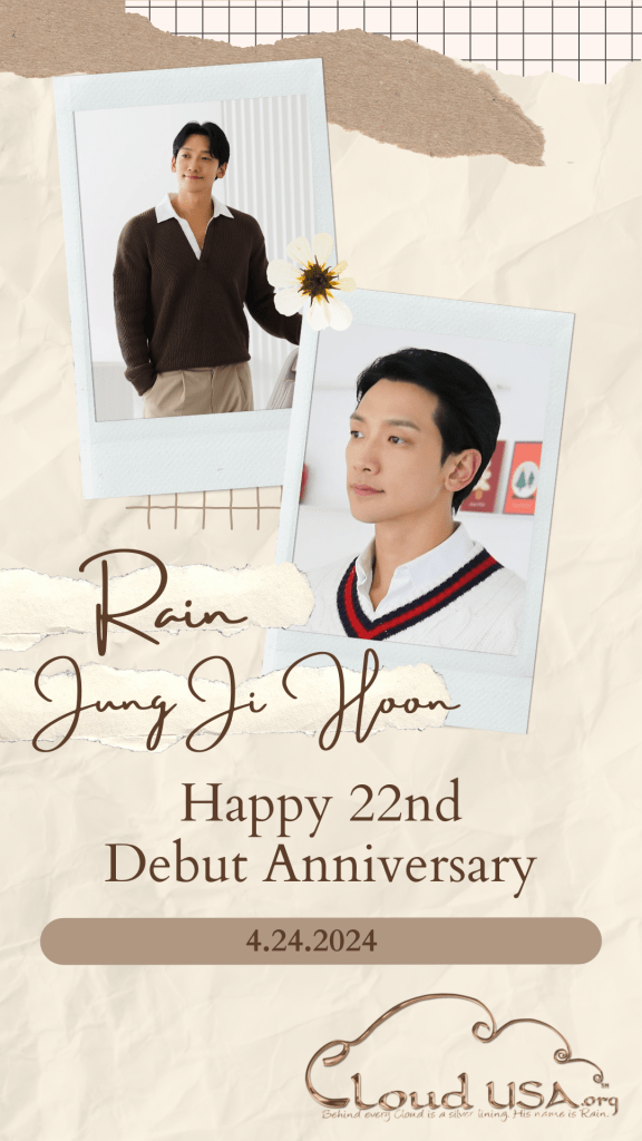 April 24. This past week, we celebrated Rain’s 22nd Debut Anniversary. It was doggone fun, so see our previous celebratory post! ^@@^