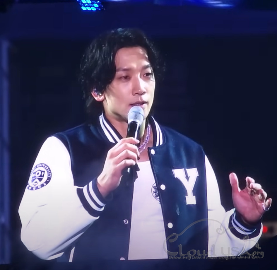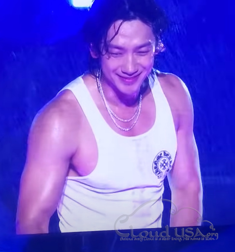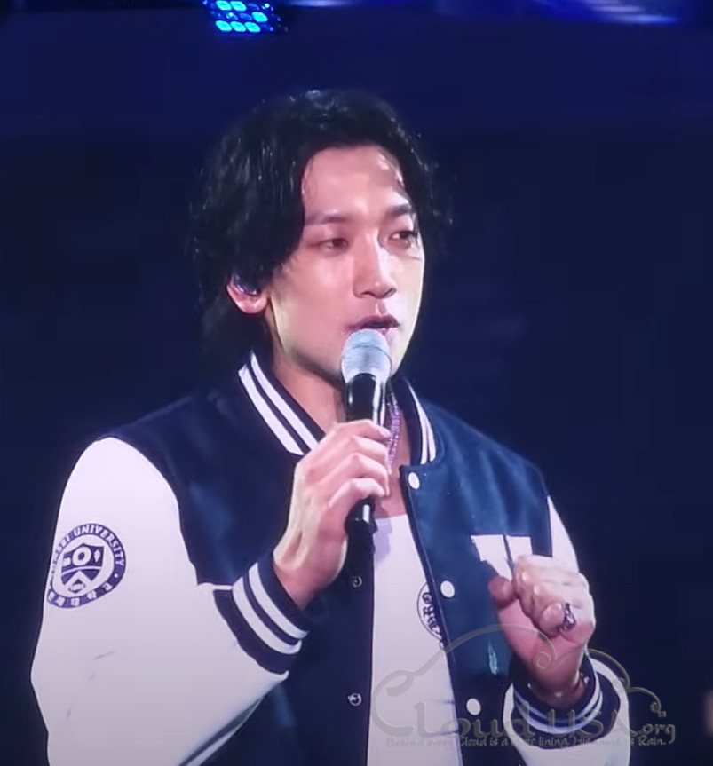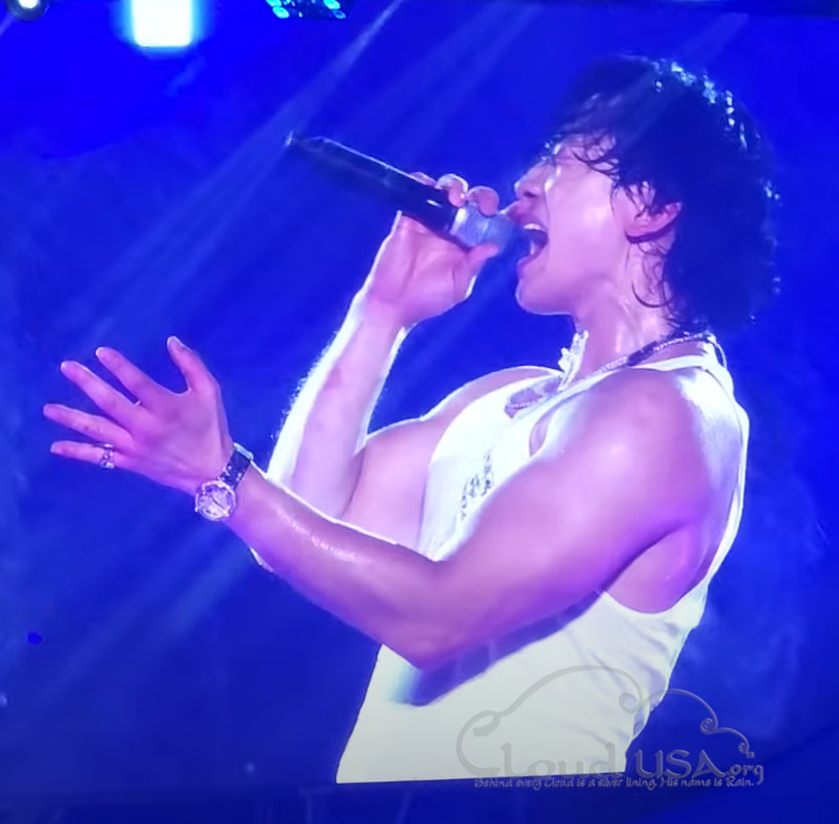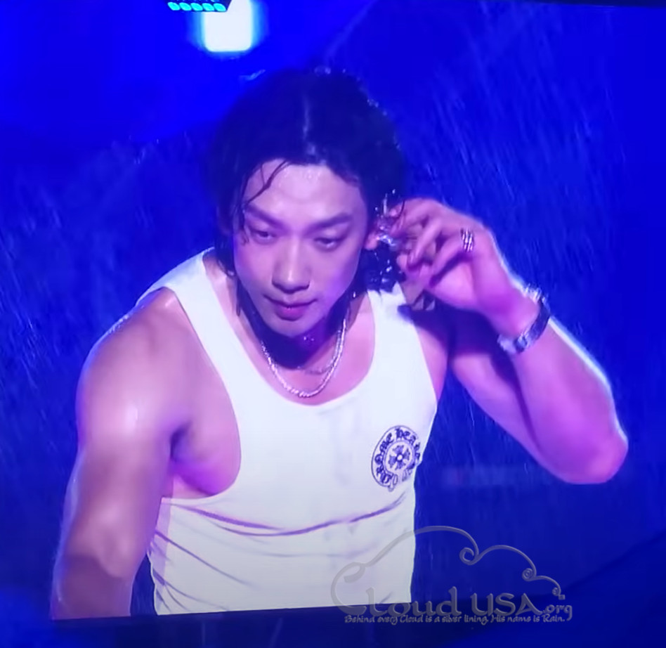 That Yonsei U. varsity jacket is FIRE. The wonderful way the audience responded to Rain and sang all of his songs had me laughing, grinning, and singing along. The blowing rain and wet stage had me nervous as heck, especially after his foot almost slid away from him at the beginning of “Gang”… and later when his shoelace came undone, I just put it all in the Lord’s Hands. Whew! THOSE SHOULDERS. They chanted his name and demanded an encore, aw! The comments under the video are AH-MAZING. Someone even called him a “beautiful sin.”