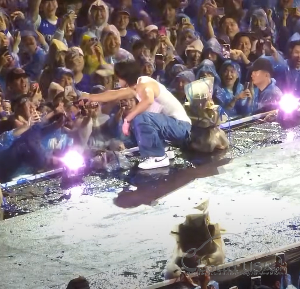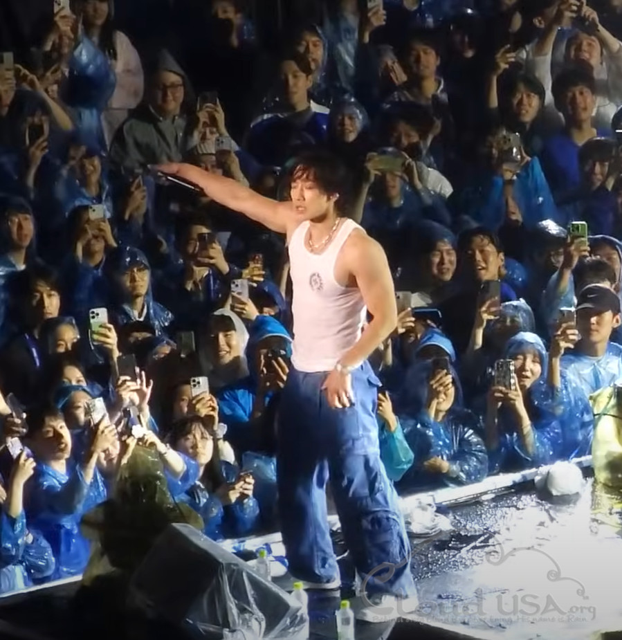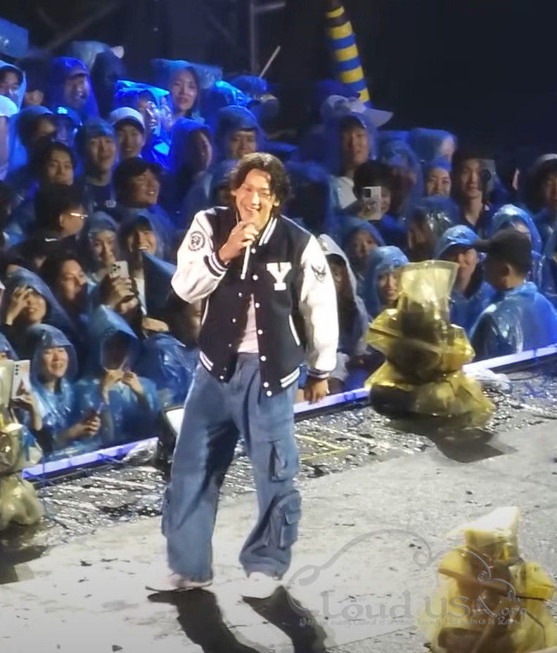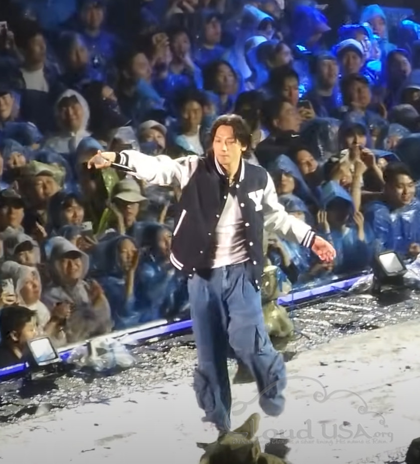 That Yonsei U. varsity jacket is FIRE. The wonderful way the audience responded to Rain and sang all of his songs had me laughing, grinning, and singing along. The blowing rain and wet stage had me nervous as heck, especially after his foot almost slid away from him at the beginning of “Gang”… and later when his shoelace came undone, I just put it all in the Lord’s Hands. Whew! THOSE SHOULDERS. They chanted his name and demanded an encore, aw! The comments under the video are AH-MAZING. Someone even called him a “beautiful sin.”