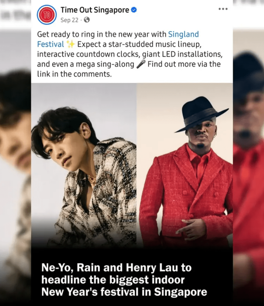 9/22/2025. As announced on Time Out Singapore‘s Facebook and website, about who’s going to be at the Singland Festival to bring in the New Year. ^@@^