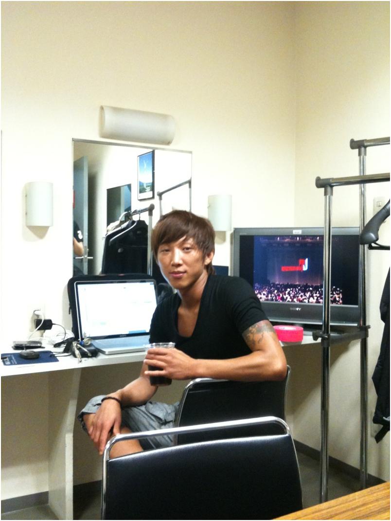 Well, thanks to Rain cloud Glenda tweeting to the handsome Ko SooBong in an attempt to find that answer, and SooBong kindly tweeting the answer back to her, we now know that “sweetie” in the above picture (backstage at the XVI Asian Games in China, November 2010) is hyung Yong Deock (Yongduck), who Rain mentions in his choreography thanks for the Back To The Basic mini-album.
