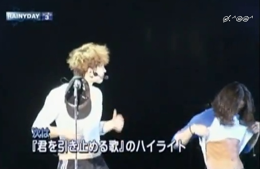And so “Hip Song’ and “Touch Ya” go off without a hitch. And “You (make me crazy)” and “I Love You Again.” The Men Behind the Man are looking GOOD. The Women are GORGEOUS. Hmm. I never knew that the Union Jack could look so s-w-e-e-t on the side of a man’s thigh, but then it is JiHoon‘s thigh, right? Just an observation. 🙂