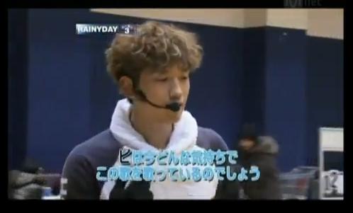 0:53 Rain : Hyung! I’ll sing this song (Not a single Day) to just the background music soon after I say, “You know this song?”